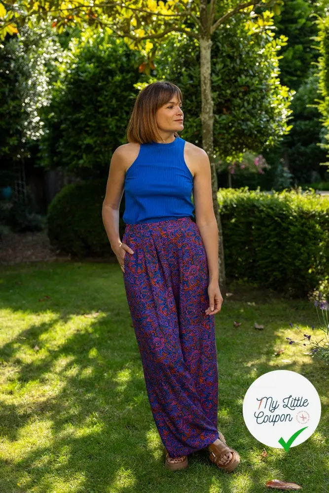 Nous conseillons de le coudre dans des matières fluides pour garder la souplesse et la légèreté de sa ligne, telles que la viscose, le crêpe léger, la soie, le tencel, le lin, le lin viscose, ou encore le lyocell, qui vous permettront de sublimer toutes vos versions, mais aussi d’avoir un pantalon parfait en toute occasion !